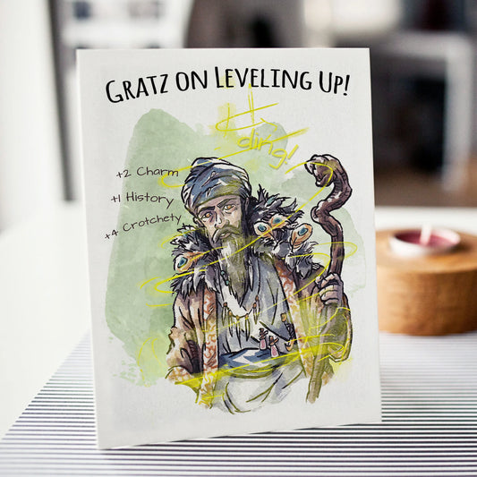 "Gratz on Lvling" (Wizard) - D&D Nerdy Gamer Birthday Card