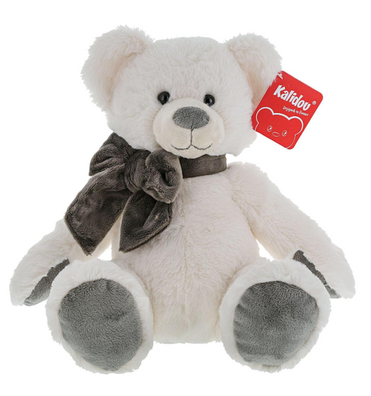 Kalidou White Teddy Bear Grey Bow