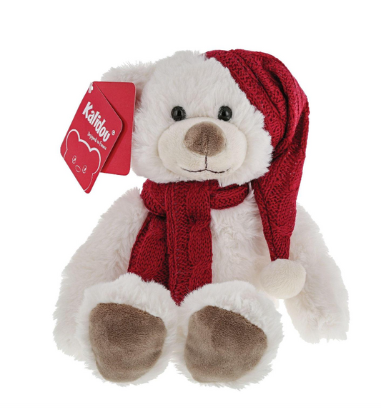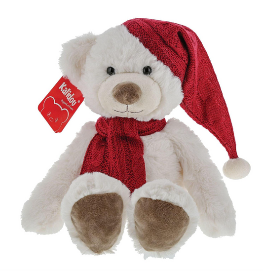 Kalidou White Teddy with Red Hat & Scarf