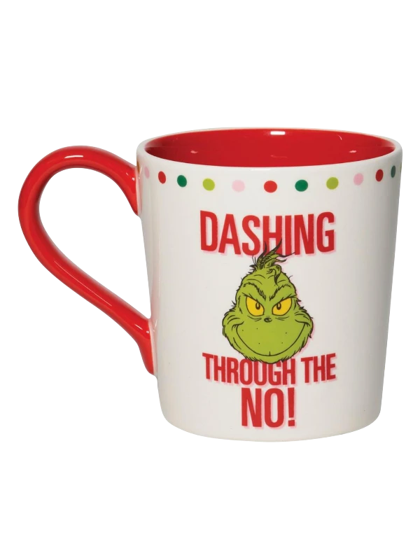 Celebrate the season in style with everyone's favorite Christmas curmudgeon, the Grinch. Fashioned onto a festive mug, the Grinch puts his own spin on a popular holiday carol, improvising his own lyrics to "Dashing through the No!"